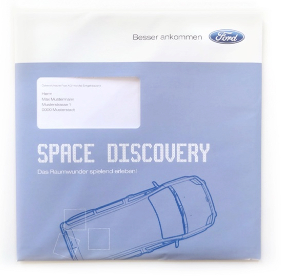 Direct-Mailing an Familien Der meist gewerblich genutzte Ford Tourneo sollte als praktisches Familien-Auto vermarktet werden. Das Fahrzeug bietet zwar nur eine karge Innenausstattung – punktet dafür aber mit einem großzügigen Platzangebot. Die Aufgabe: Entwicklung eines Directmailings an die Zielgruppe Familien …