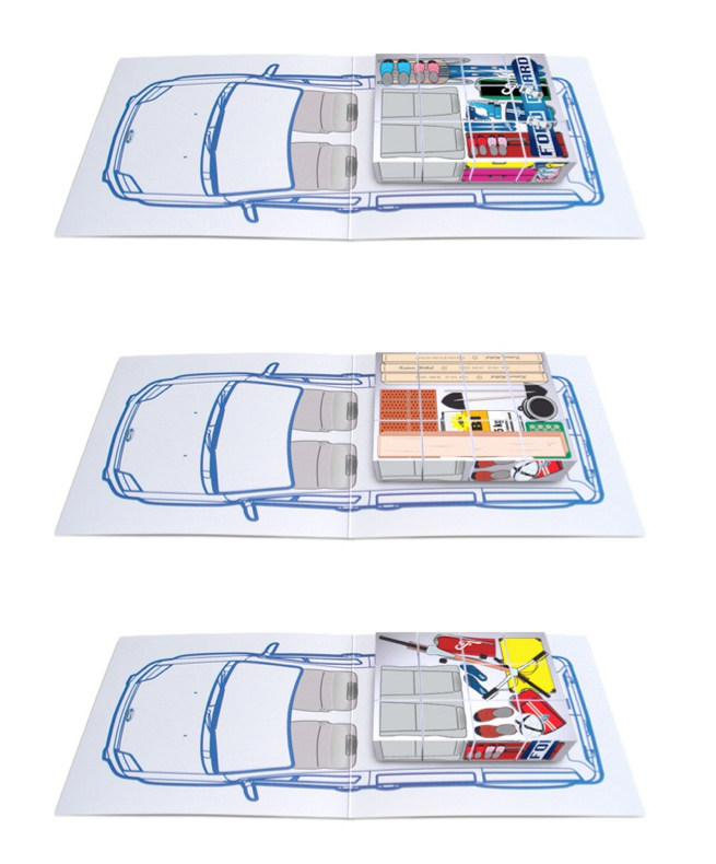 Spiel, Spaß und Probefahrt Ein Erlebnis für die ganze Familie: Das Directmailing, bestehend aus Versandhülle, Anschreiben, Folder und Bastelbögen, ermöglicht es, das Platzangebot und die vielen Einsatzmöglichkeiten des Fahrzeugs spielerisch zu erfahren. Kostenlose Probefahrt inklusive. Ich habe die kreative Leitung des Projekts bei der Agentur Wunderman verantwortet.