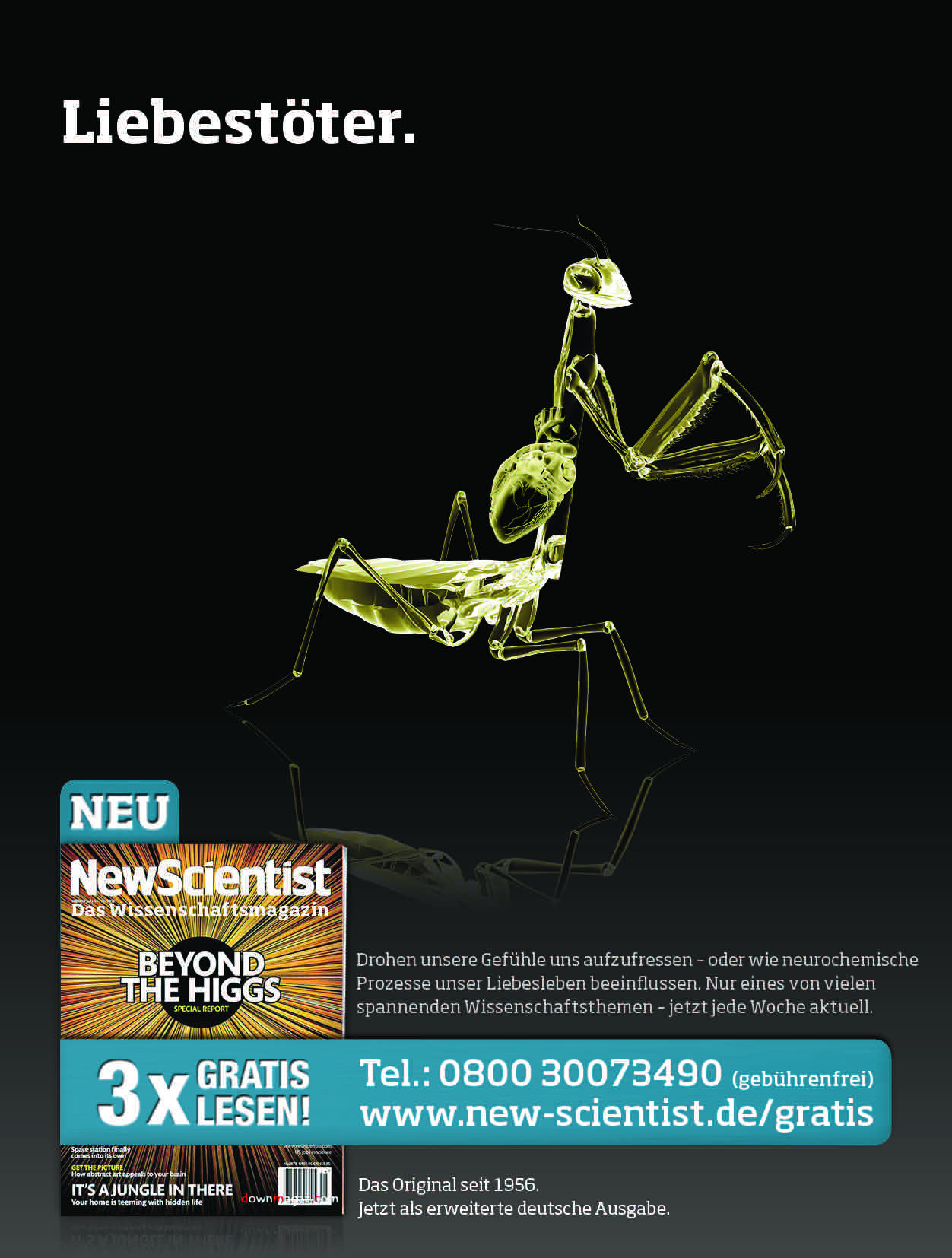 Magazin-Launch/Abonnenten-Gewinnung Der SPIEGEL Verlag launchte den New Scientist, das renommierte britische Wissenschaftsmagazin als erweiterte deutsche Ausgabe. Die Aufgabe: Markteinführung, Bekanntmachung, Abonnentengewinnung.