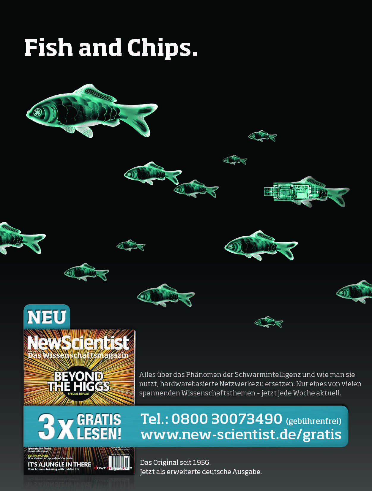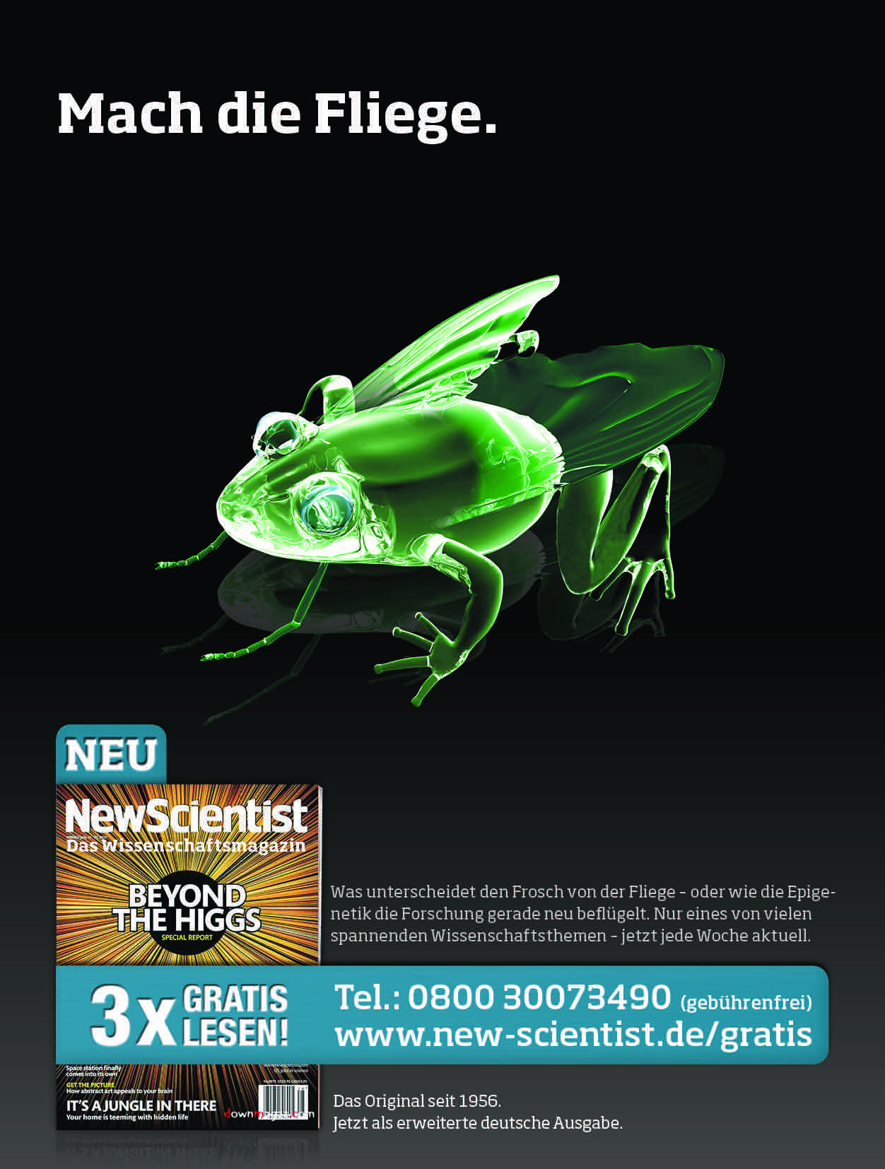 Techno-Style trifft Gratis-Abo Die Erfolgsformel für die Launch-Kampagne: knackig verpackte Wissenschaftsthemen, technoide Ästhetik und eine Gratis-Testaktion. Eingesetzt wurden Anzeigen, Heftbeilagen und Directmailings. Ich habe die Kampagne für die Agentur DNS entwickelt und getextet.
