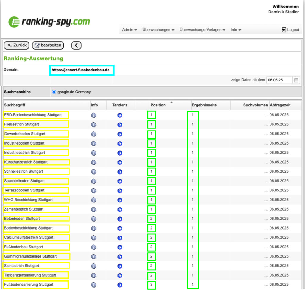 Bestens: die Keywords im Google-„Ranking-Check“ (zum Lesen doppelklicken)