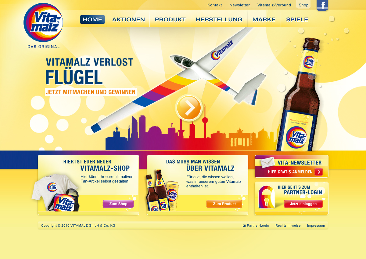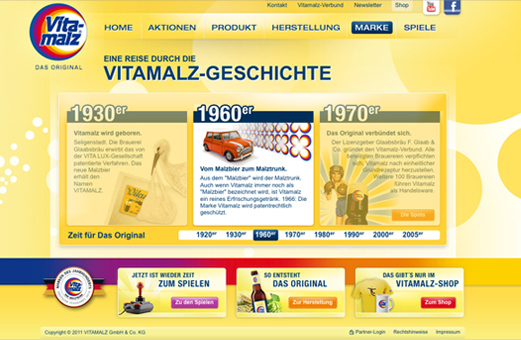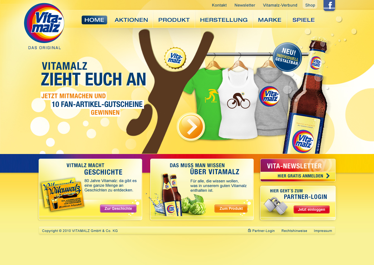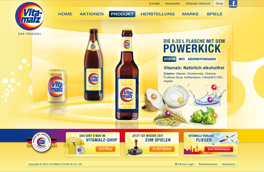 Website für die Kultmarke Vitamalz gehört zu den bekanntesten Getränken Deutschlands. Der Malztrunk ist bei Erwachsenen genauso beliebt wie bei Kindern. Für den optischen und inhaltichen Relaunch der Website sollte der sportliche Markenkern beibehalten und mit modernen Lifestyle-Elementen ergänzt werden. Die Aufgaben: Entwicklung neuer Content-Elemente und Aufbau einer Community