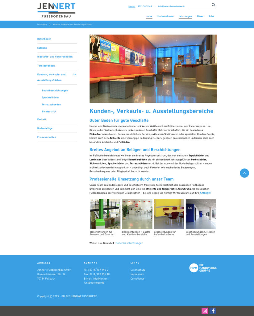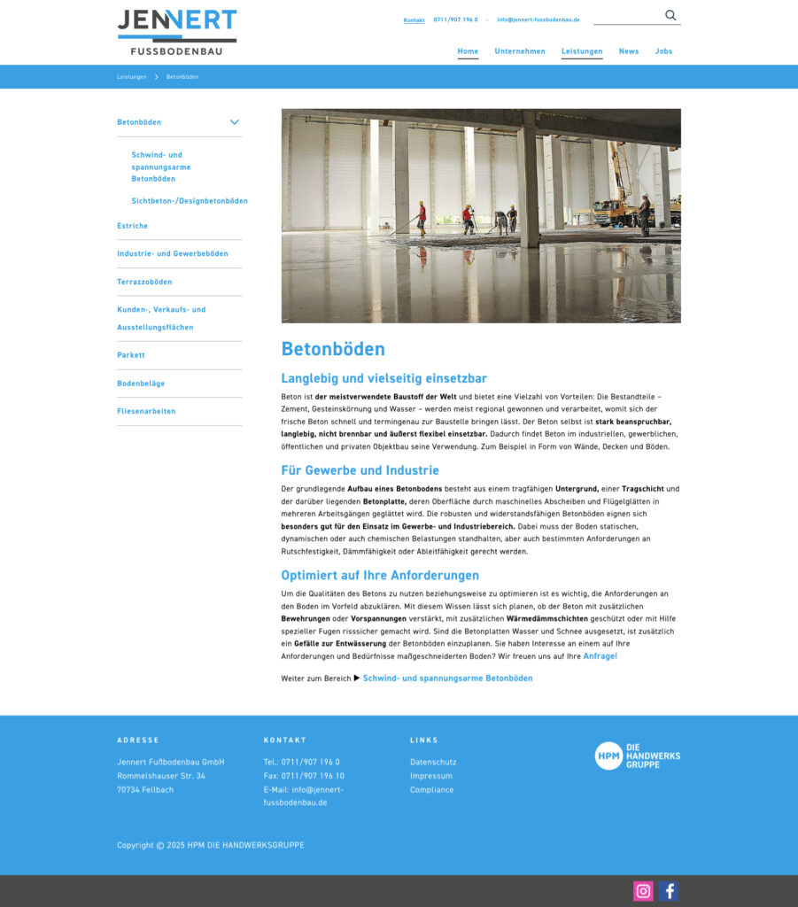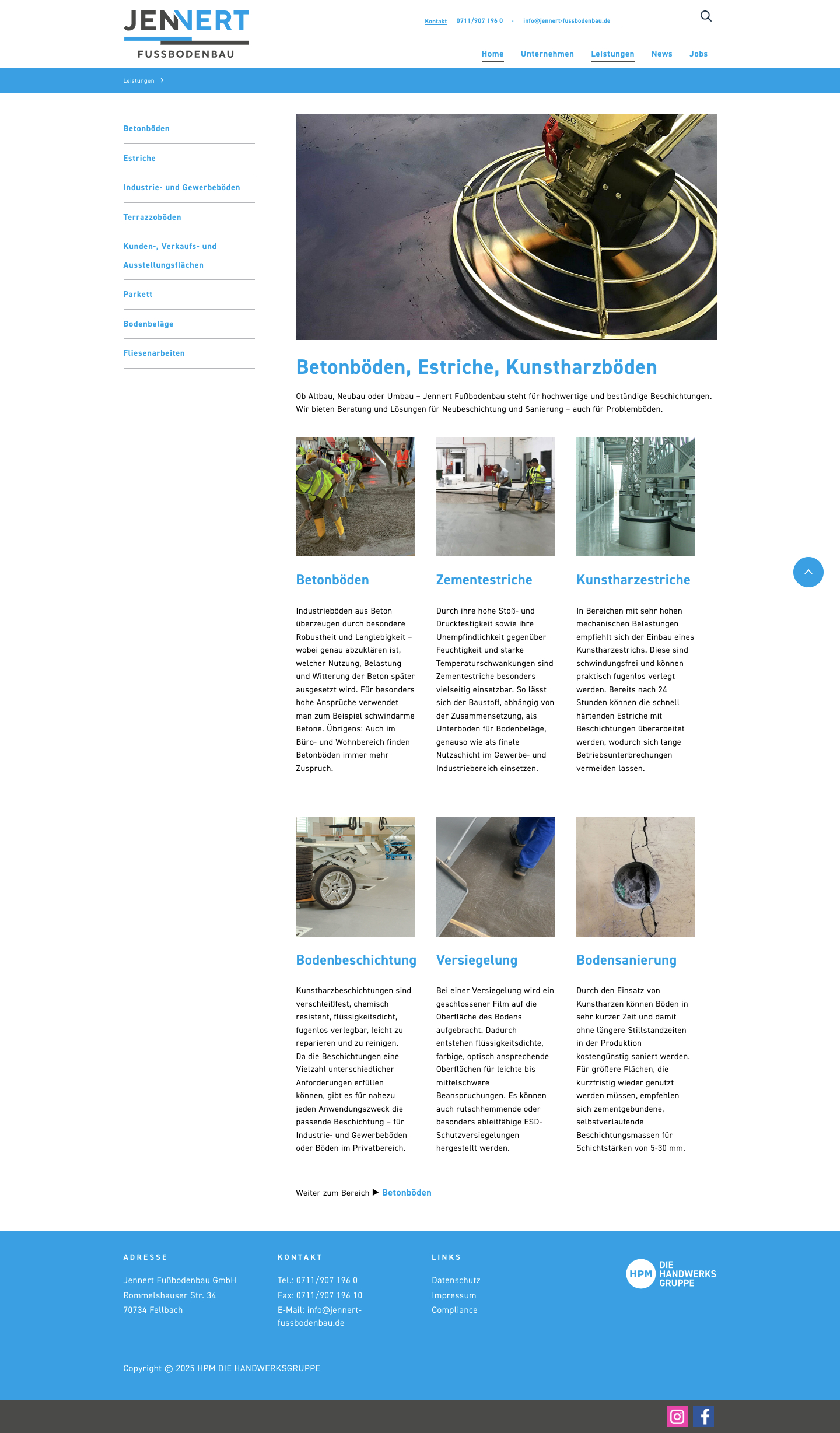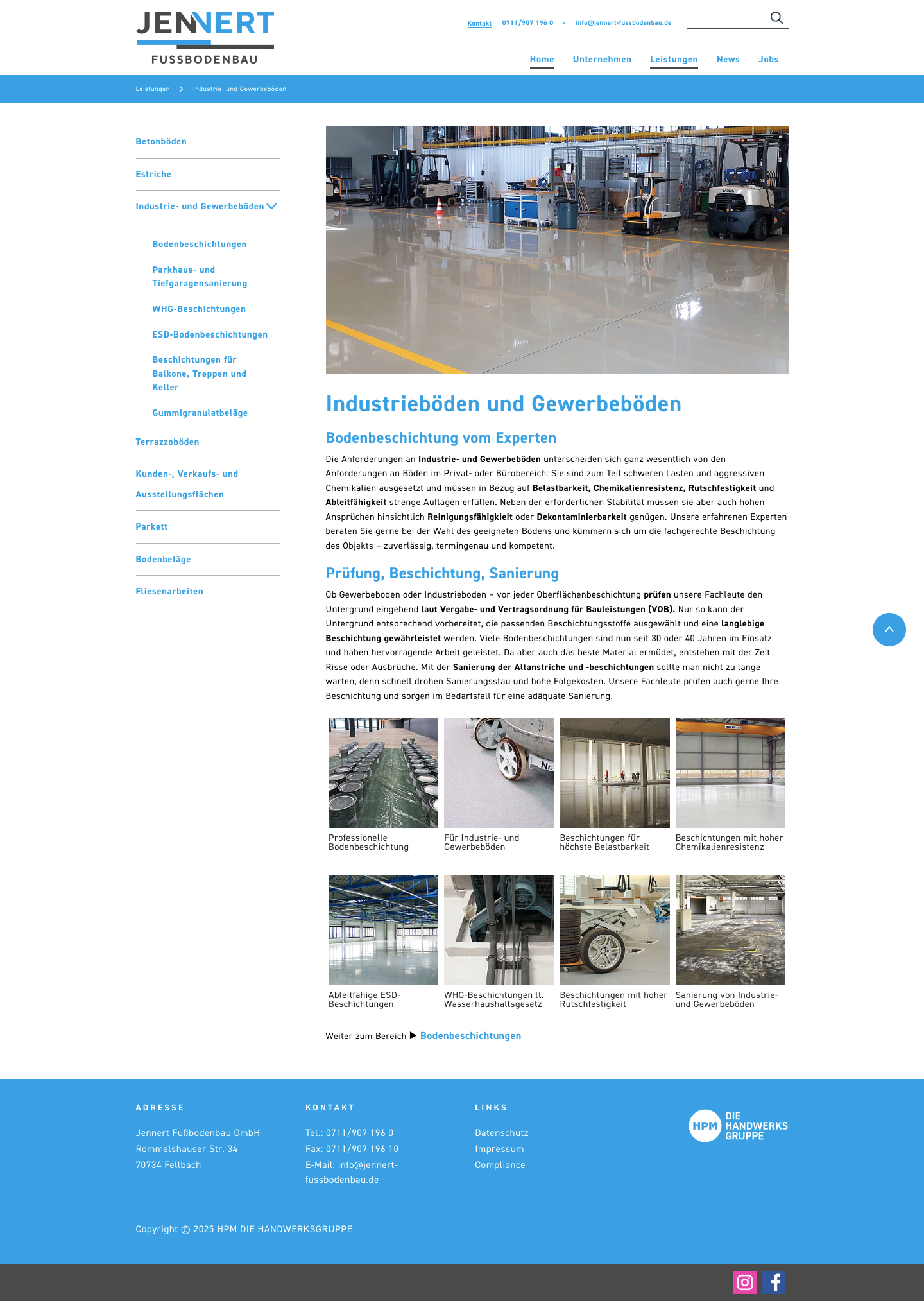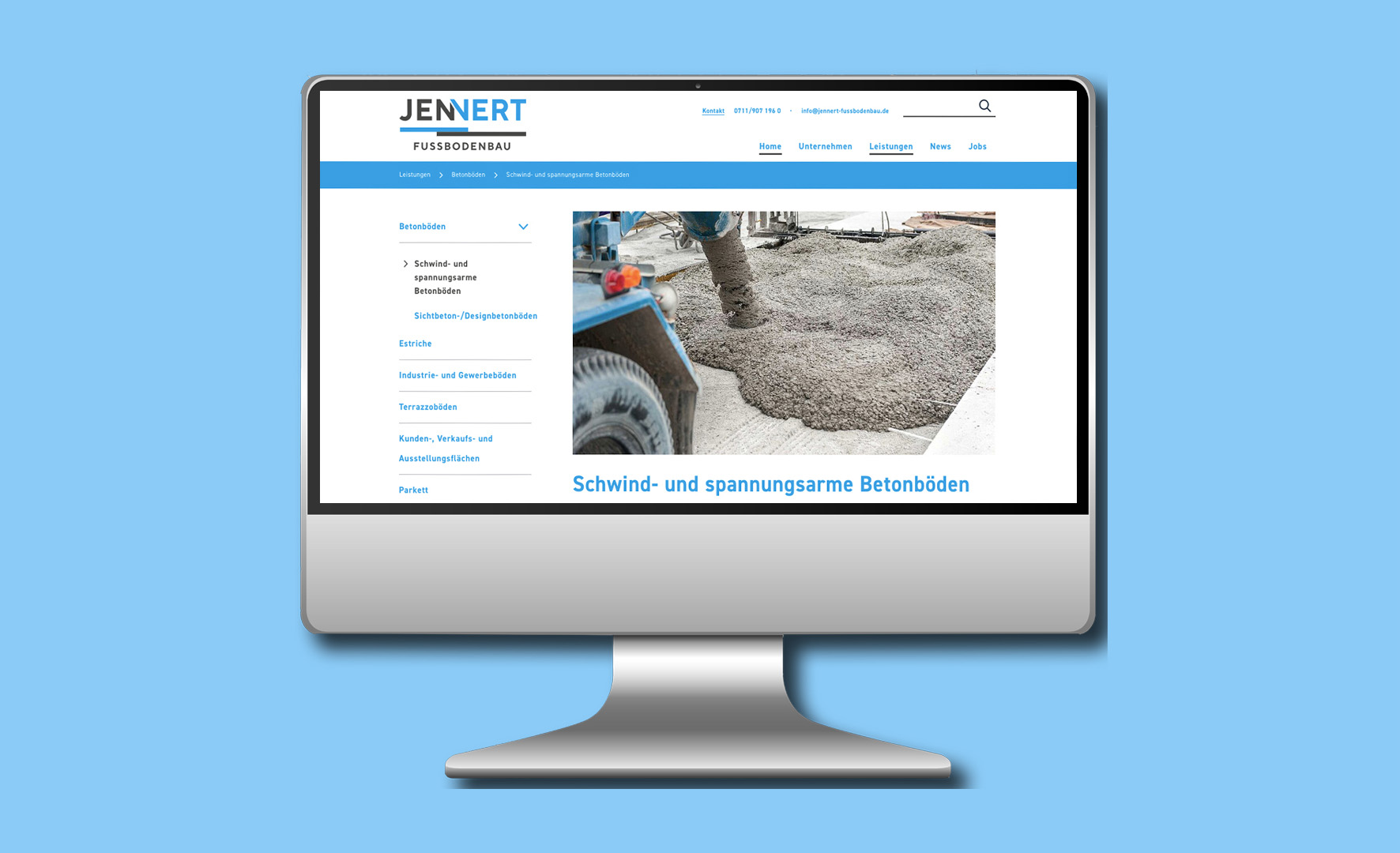 Website Jennert Fußbodenbau, Stuttgart: Konzept, Bau in Typo3 und Erstellung des gesamten Contents